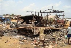 Pictures released on the LTTE-linked TamilNet website showed what it said was the aftermath of the attack, with several buildings on fire and many wounded civilians, including children.